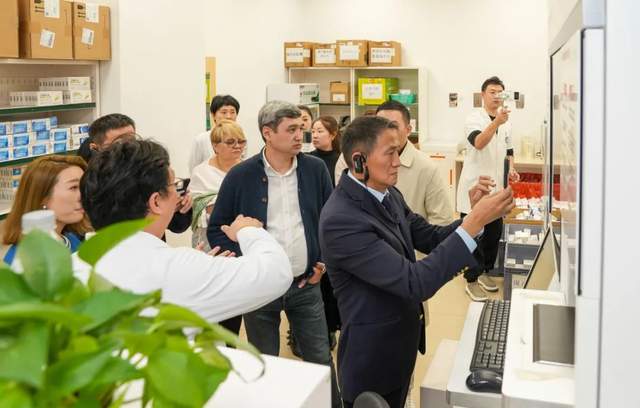 来到药房,代表团被先进的自助发药系统深深吸引,自主完成上药、抓药、核对、发药,能更高效快速完成患者药物的调配,更好地服务患者。