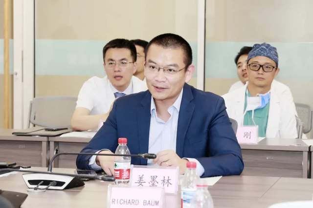 首颐医疗总经理姜墨林和Baum教授作了深入交流。他肯定了此次跨学科交流对推动核医学技术临床应用落地、多学科协同的意义,期待北京大学首钢医院能够与Baum教授团队建立长期合作,推动医院建立强大的肿瘤诊疗学科集群,推动肿瘤诊治水平与方式迈上新台阶,使医院在分子靶向核素治疗等前沿领域实现从跟跑到并跑的跨越。